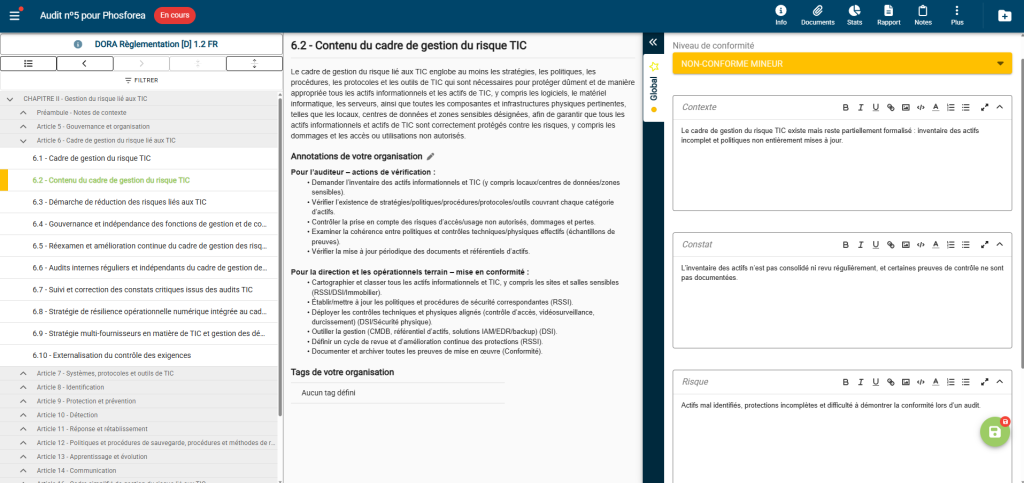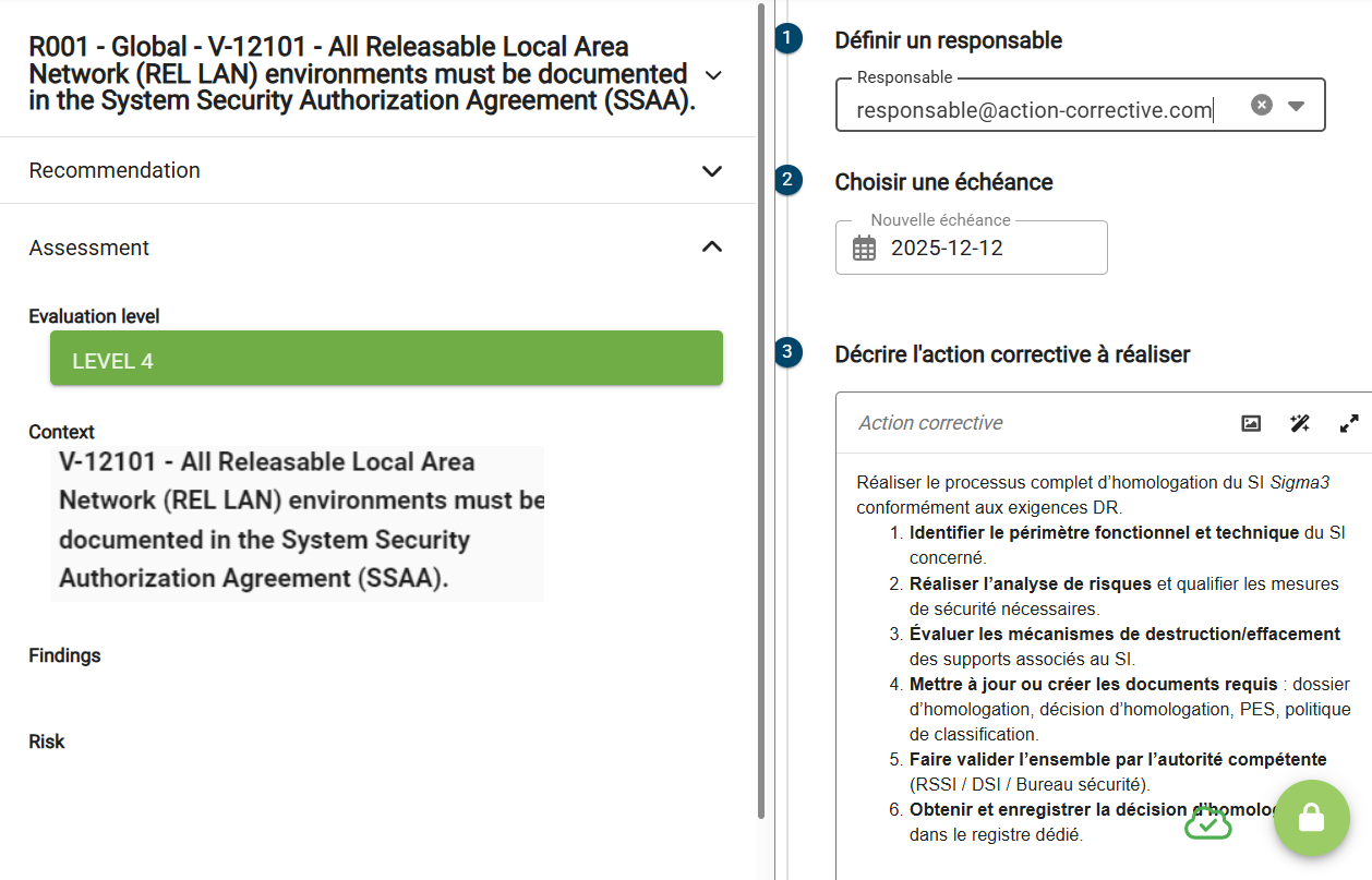 Constats, écarts, recommandations et plan d’action générés en un clic, prêts pour la direction ou le donneur d'ordre.